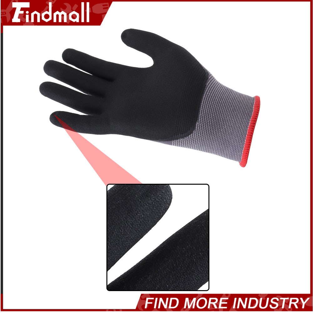 Findmall 3 Pairs Work Gloves MicroFoam Nitrile Coated Knit Nylon Gloves S-Size