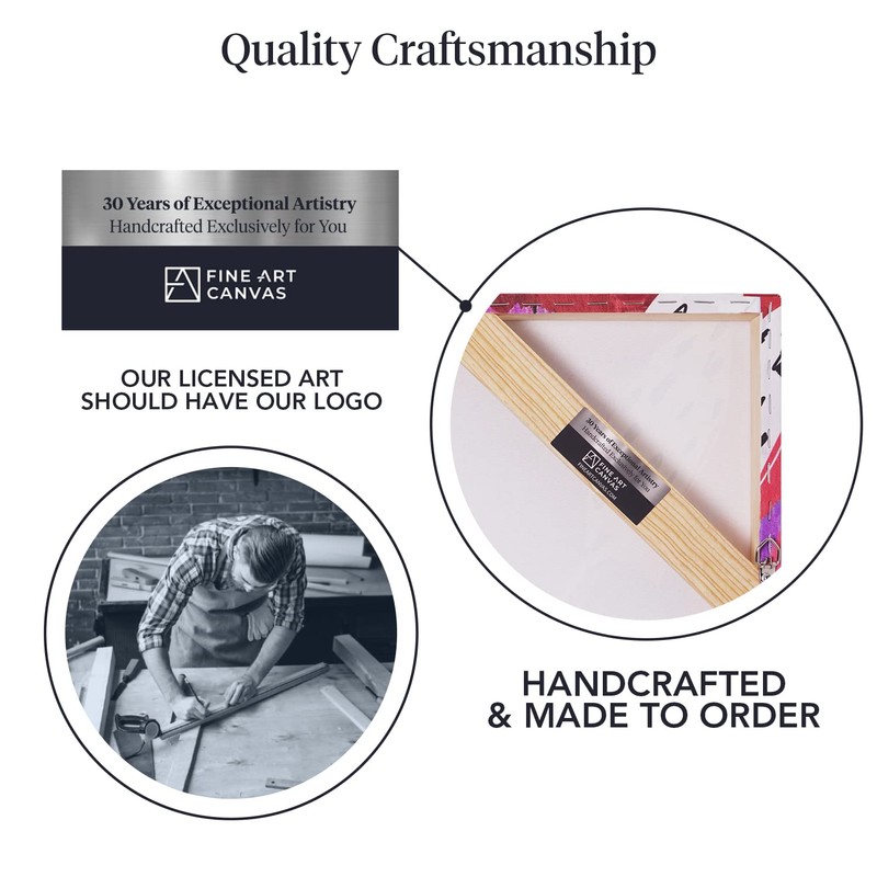 - HIGH-QUALITY MATERIALS - Our craftsmen utilize high-quality canvas and wood frames. Each print is produced with a state-of-the-art giclee printing process, ensuring a pristine finished product.