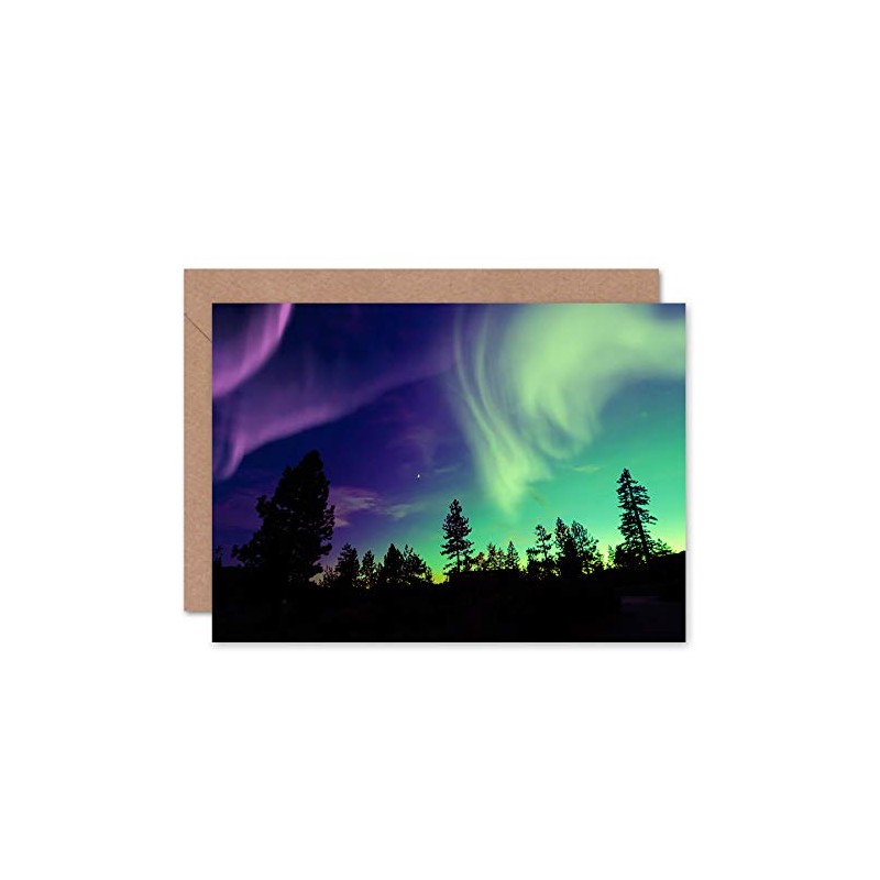 Fine Art Prints Northern Lights Pine Silhouette Greeting Card with Envelope Inside Premium Quality Black Green 12.5cm x 17.5cm CLDT0167