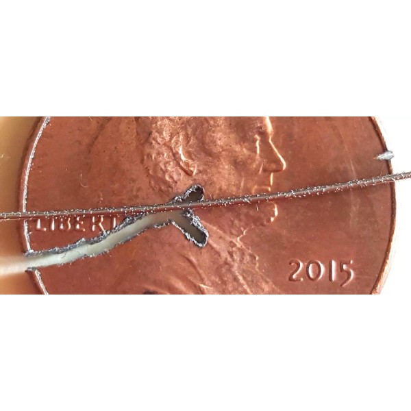 For sale is a 15 foot length of Japanese  0.35mm Diamond Wire for CRL type hand held wire saws or any clamp style (not peg style) wet scroll saws. This 15 foot section of wire can be cut to any length you need. It is made of high grade ELECTROPLATED steel with a diamond grit diameter of M30-40! It is intended for high accuracy, high precision cutting of materials of all types including glass, ceramics, stone, brittle materials, or extra hard materials such a sapphire. It easily cut through the penny by hand as you can see in the photos. If you would like us to cut the 9 foot length into smaller sections, please let us know. If you need any longer length we can discuss a good bulk offer.