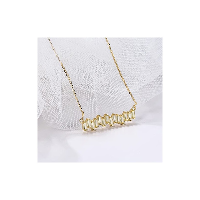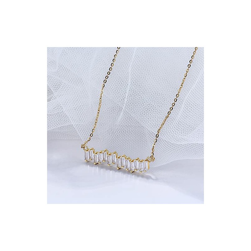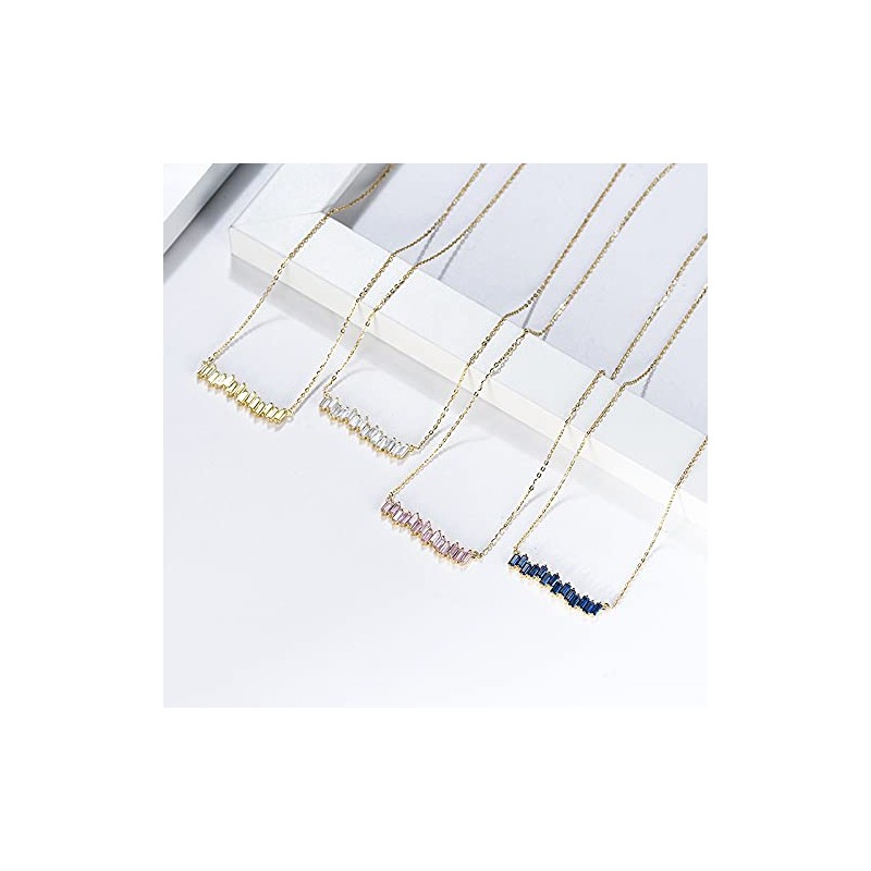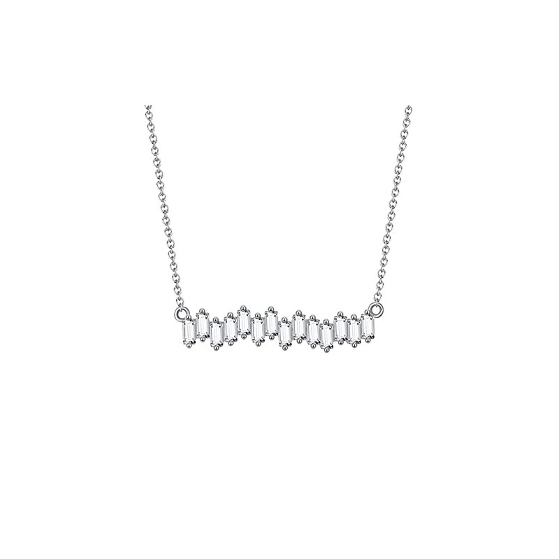 - CRAFTMANSHIP: A breathtaking scattered Zig Zag cluster baguette of CZ in this dramatically beautiful bar pendant necklace. A Cluster of Baguette Cubic Zirconia in this bar setting lights up this dramatic cluster pendant necklace. length of Chain:41 cm/16 inches+5 cm/2 inches. Width of Pendant:30mm/1.18 inches. This Necklace is available in Rhodium Plated.
