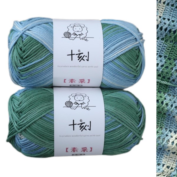 Fine Knitted and Crocheted Cotton Yarn, 100% Long Staple Cotton Yarn Multicolour Gradient Yarn, Infant Sports, 2 Packages 100 g/3.52 oz (50 g/162 yds per Strand) - sc06