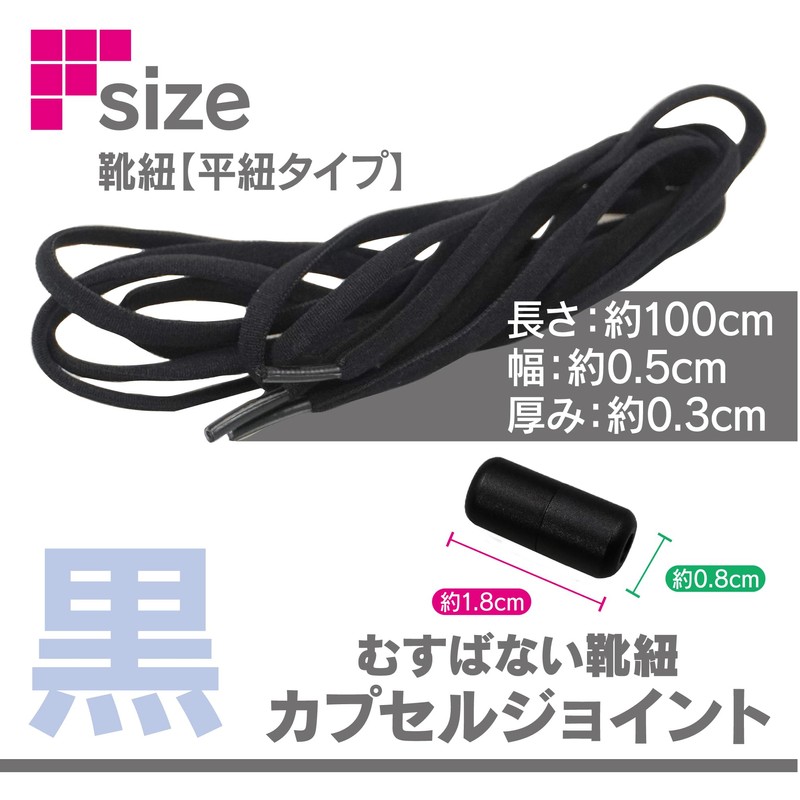 • [Size (Approximate)] Shoelaces: Length 39.4 x Width 0.2 x Thickness 0.1 inches (100 x 0.5 x 0.3 cm); [Materials] Shoelaces: Nylon, Polyester, Connected Capsule: Aluminum, Color: Black x Black; Country of Origin: China