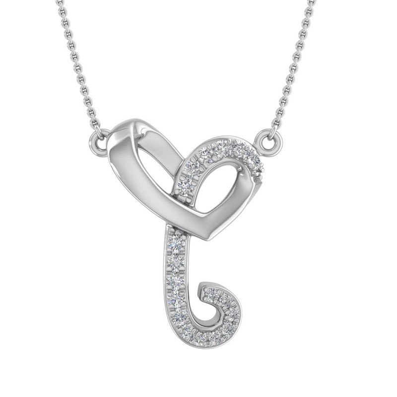 FINEROCK 0.12 ctw Diamond Heart Initial C Letter Pendant Necklace in 10K White Gold (with Silver Chain)
