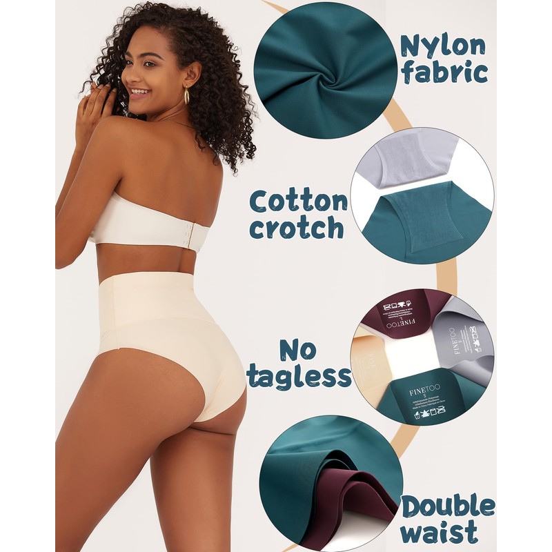 FINETOO Seamless Underwear for Women High Waisted Tummy Control Panties No Show Nylon Womens Briefs 4 Pack S-XXXL