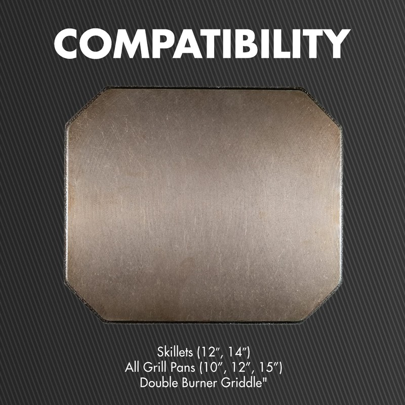 One of the unique features of this iron press is its versatile compatibility. It's designed to work seamlessly with FINEX Grill Pans (10", 12", 15"), skillets (12", 14"), and the Double Burner Griddle. The mitered corners of this press fit precisely into the cookware's angled sides, enhancing the look of your kitchen while ensuring perfect fit and function.