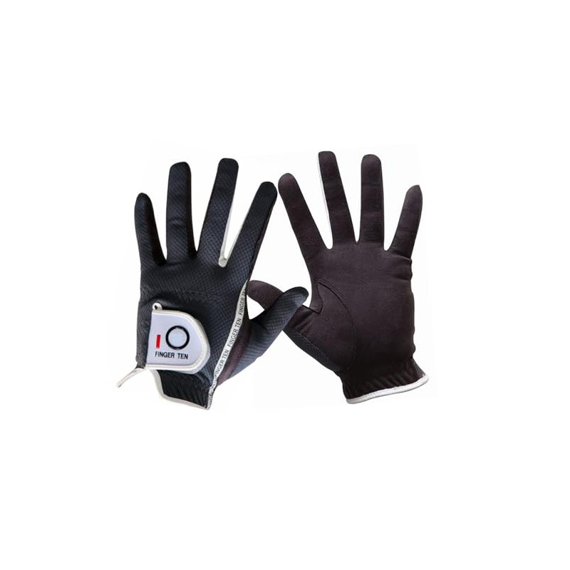 FINGER TEN Men’s Golf Glove Rain Grip Pair Both Hand Left Right Hand, Hot Wet Weather No Sweat, Black Grey, Fit Size Small Medium Large XL (Grey, M/Large)