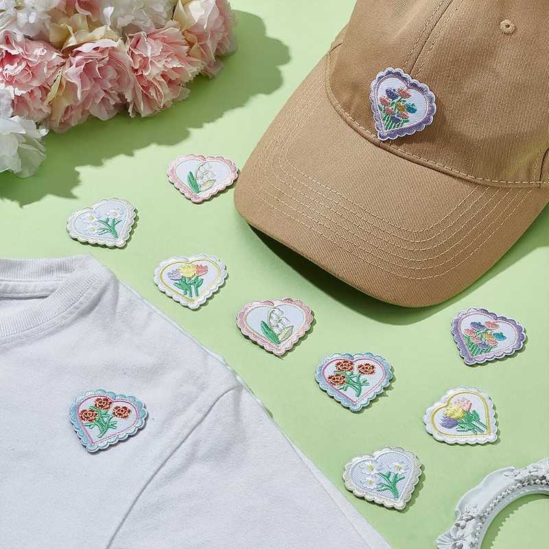 - Charming Heart Shape Design: Our Heart Shape Self-Adhesive Patches feature a delightful floral pattern, including roses, daisies, tulips, and lily of the valley. This romantic design is perfect for expressing love and adding a charming touch to any fabric or accessory