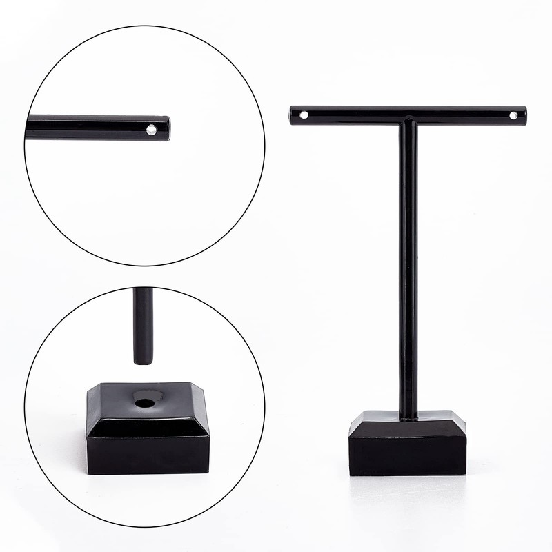 - 【Package Included】: 6 pieces T bar earring holders with black color and square base, including 2 sizes, large: (30 x 84 x 115 mm), small: (30 x 62.5 x 95 mm), 3 pieces/size, 2 holes on the T-bar, good for both stud earrings and earrings.