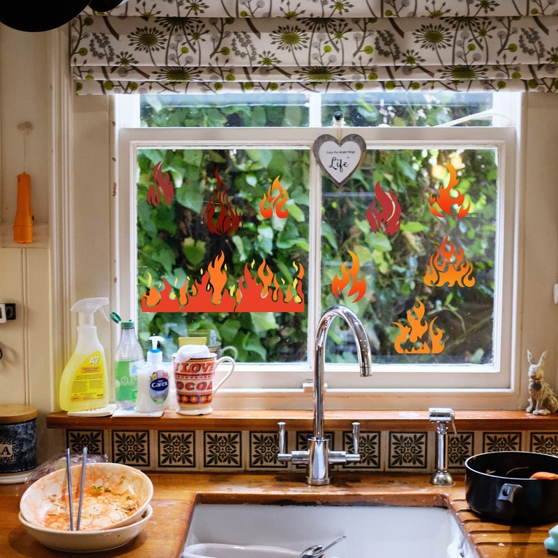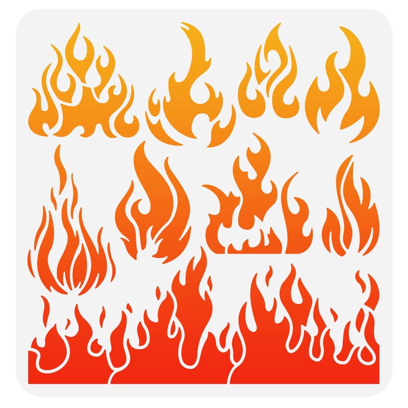 FINGERINSPIRE Flame Stencil 11.8x11.8 inch Reusable Fire Stencil Plastic 9 Styles Fire Pattern Stencil Flame Painting Decor Template for Arts Window Wall Crafts Painting Decorations