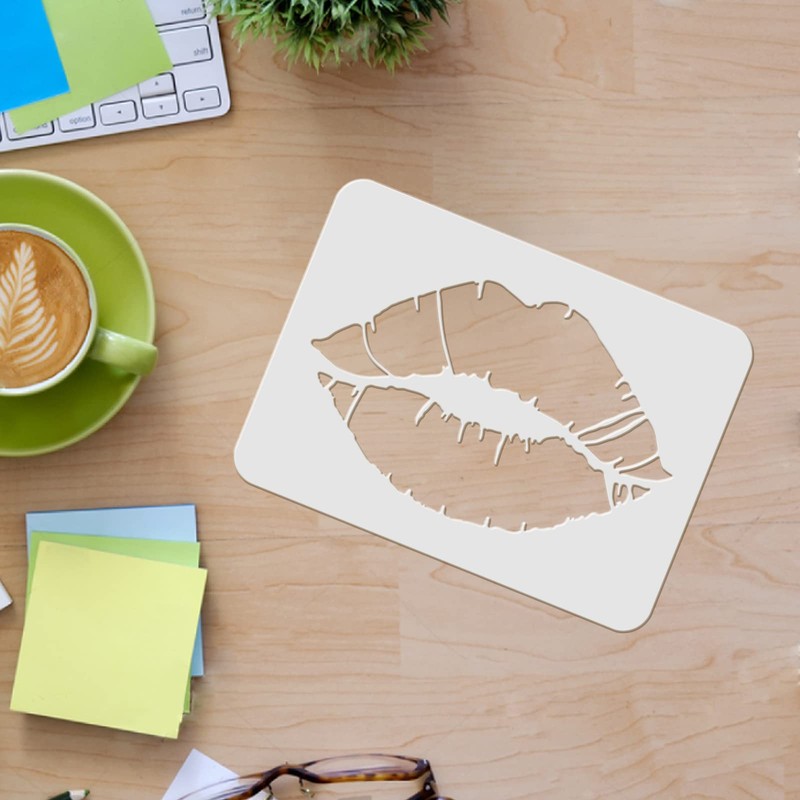 - Lip Stencils The plastic stencil is made of lip patterns, which will add surprises and joy to your life. Size: 29.7 x 21 cm.