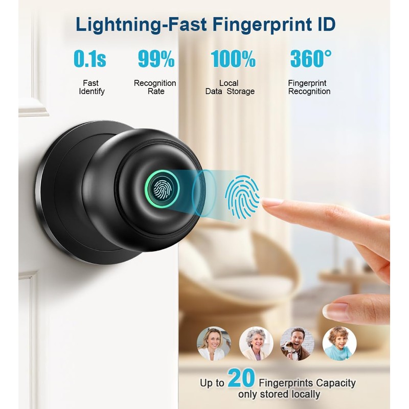 - [Worry-Free Smart Door knob] The smart lock for bedroom doors adds an extra layer of security to your home. Whether you're looking for a door knob with lock for your apartment or a smart home device to keep your home secure, our fingerprint door lock has what you need. Hassle-free 30-day return policy and 24-hour technical support via email.