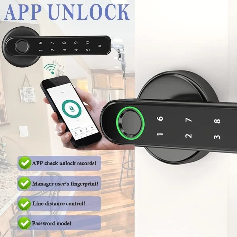 Fingerprint Smart Door Lock APP Control Biometric Door Lock with Handle For Home