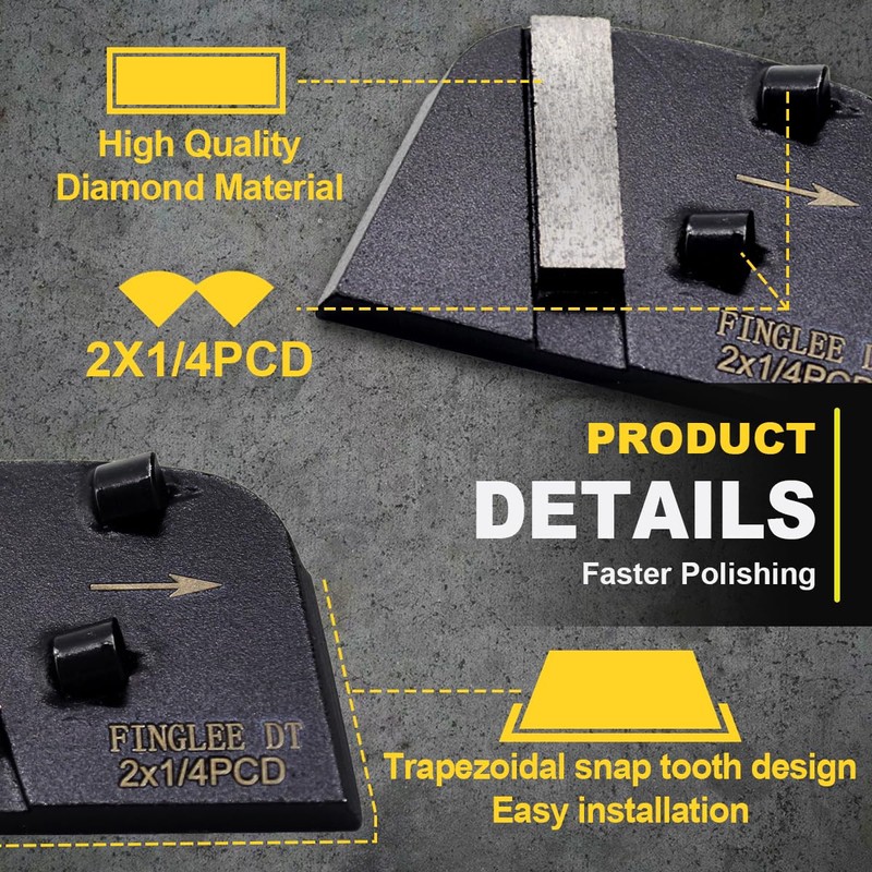 - Package includes 3 pieces of 2*1/4 PCD clockwise diamond grinding shoes.