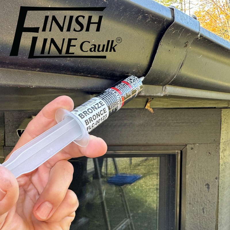 Finish Line Caulk – Acrylic Urethane Elastomeric Sealant – Pre-Filled Precision Caulk Gun – Dark Brown/Bronze – 1 oz Tube – Flexible & Durable Sealant for Trim, Baseboards, and Small Cracks