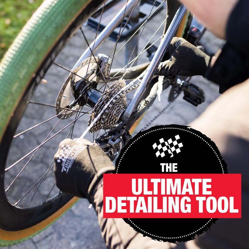 - The ultimate detailing tool! Perfect for cleaning your rear cassette, front chain rings, derailleur pulley wheels, hubs and spindles, brake arms, bottom bracket / crank interface, and more.