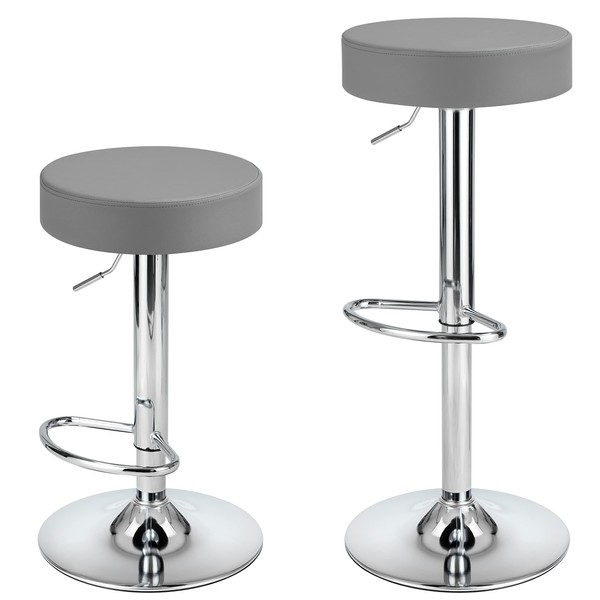 Finnhomy Bar Stools Set of 2 Modern PU Leather, Swivel Barstools with Footrest and Backless Round, Counter Height Adjustable Modern Counter stools for Kitchen, Grey