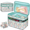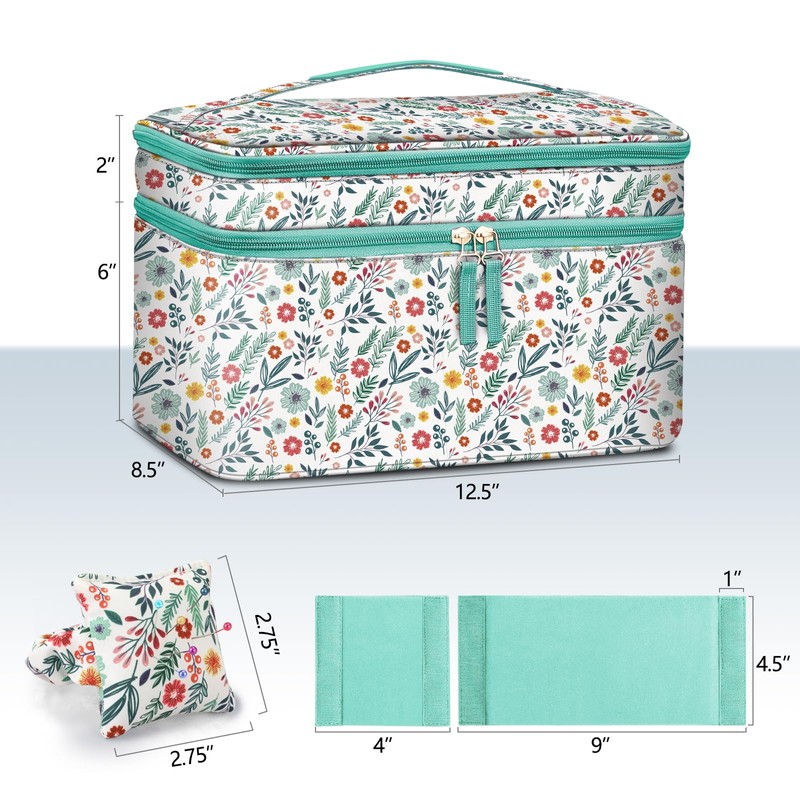 FINPAC - Funda de almacenamiento y organizador para accesorios de costura, kit de costura de doble capa, bolsa de transporte con pasador de muñeca para hilos, agujas, suministros de hilo bordado, kits de fieltro (primavera flor)
