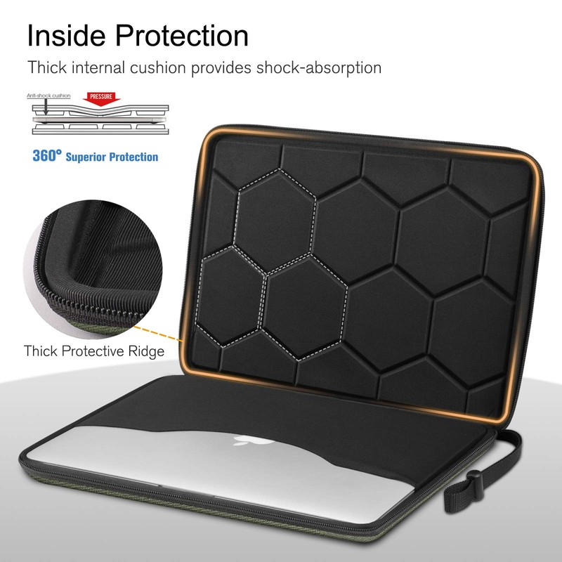- Funda a prueba de golpes para portátil: la funda para MacBook Air/Pro consta de una carcasa de EVA semidura con poliéster antiarañazos para proteger tus portátiles de golpes externos, arañazos, polvo y golpes.