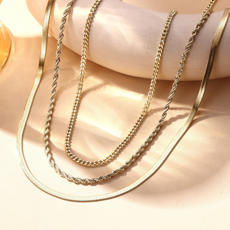 - Gold Chain For Women Size: Shorter chain (herringbone chain) length is 13.8 "+2 "- width of chain is 4.5 mm, the second necklace (twist necklace) length is 13.8 "+2 " , the longest chain (cuban necklace) length is 15 "+2 ".Each necklace has an adjustable five centimetre extension.