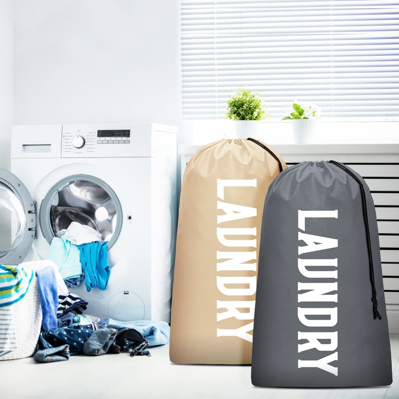 Fiodrimy 2 bolsas de lavandería de viaje XL, lavable a máquina, lo suficientemente grande como para contener 4 cargas de lavandería, fácil de colocar en una cesta o cesta de lavandería (caqui + gris)