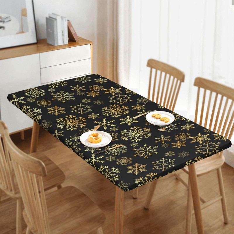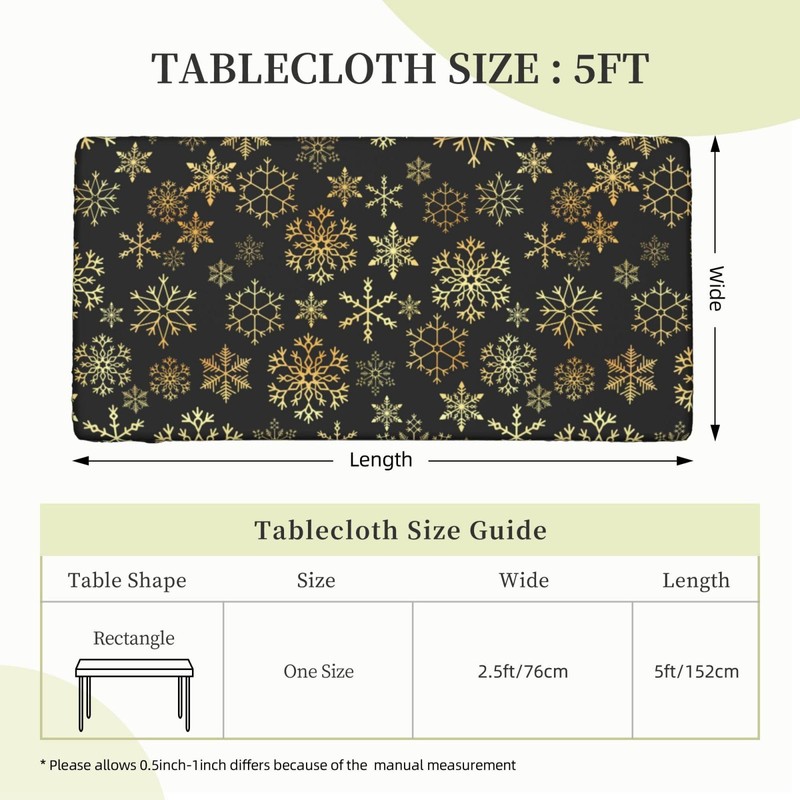 Fiokroo Winter Xmas Snowflakes Tablecloth with Elastic Edge for 5ft Rectangle Table, Table Cloth Christmas Washable Table Cover for Kitchen Dining Party Outdoor Picnic Decoration, 60" L X 30" W