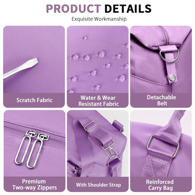 - [Durable & Water Resistant Gym Bag] - The gym bag for women is made of high quality polyester fabric, which is durable, water resistant and tear-resistant. Ideal for long-term use.