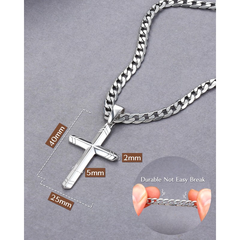 - Improved material quality: the connecting ring of the pendant has been redesigned to increase durability and minimise the risk of breakage. The 925 sterling silver cross pendant is accompanied by a diamond-cut Cuban stainless steel chain. Vacuum coating, anti-allergy, suitable for sensitive skin, never fade.