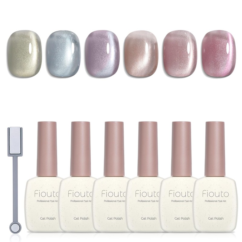 Fiouto Magnetic Nails, Large Capacity, 0.5 fl oz (15 ml), Gel Nails, Color Gel, Magnetic Gel, Cat Eye Gel, UV/LED Compatible, Magnets, 6 Color Set (Magnetic Gel)