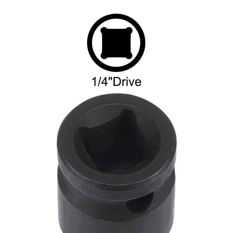 - The through-hole in the drive end locks onto the tang of impact wrenches or drivers so it won't fall off or stick on fastener heads.