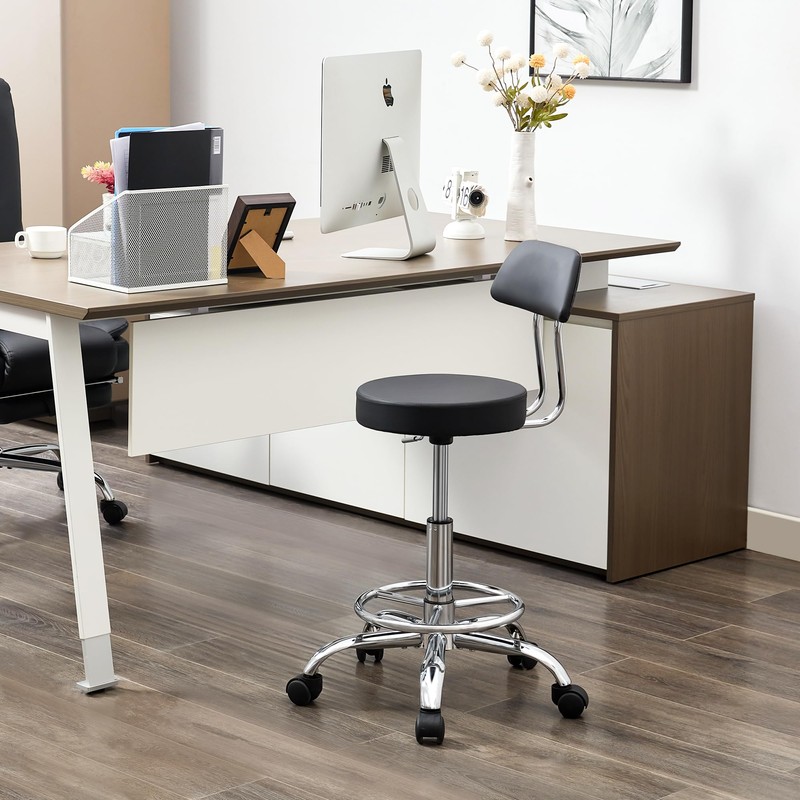 - Ergonomic Design: This stylish salon stool features a backrest and footrest that offers enhanced lumbar support and foot support, promoting proper posture during extended sitting. It helps reduce fatigue, making it ideal for long hours in settings like garages or workshops