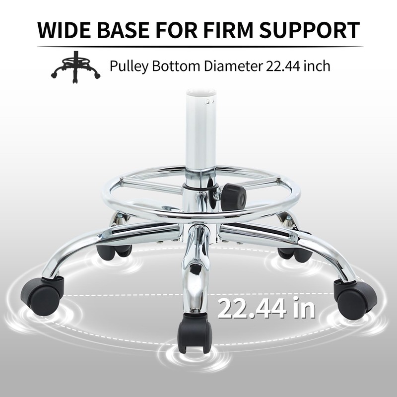 - Metal Frame Legs, Footrest and 360° Swivel Wheels: The ergonomic stool is made of sturdy, durable metal frame legs and footrest, while the smooth 360° swivel wheels allow effortless gliding across floors