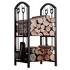 Fire Beauty Fire Beauty Fireplace Firewood Log Rack 5-Piece Storage Logs Holder with Tools Set with 4 Tools Set Fireside Holders Wood Lumber Storage Stacking Black