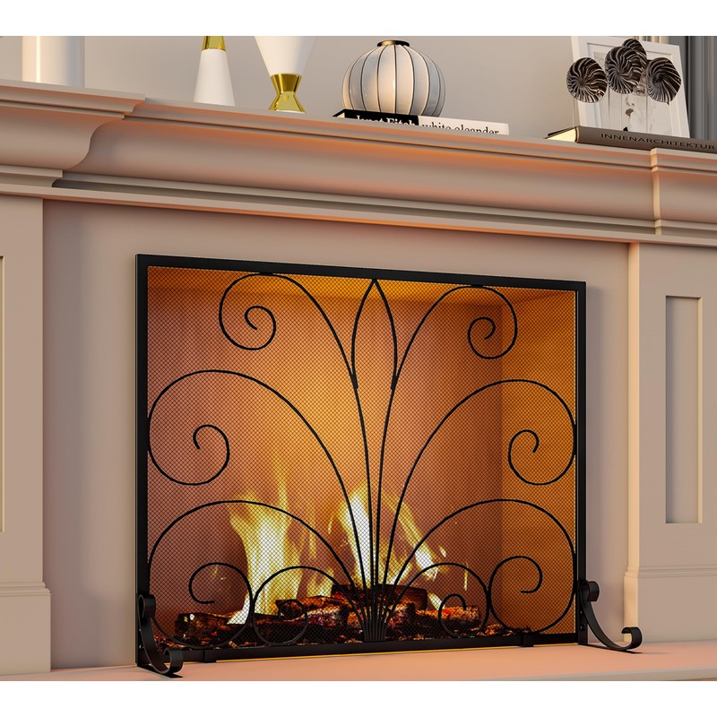 - EXQUISITE FINISH: Wrought iron mesh that is tightly woven offers a transparent barrier that captures sparks and embers and a surface that is simple to clean. This fireplace screen features a powder-coated finish and an excellent welding process to withstand high temperatures and resist rust for a long time.