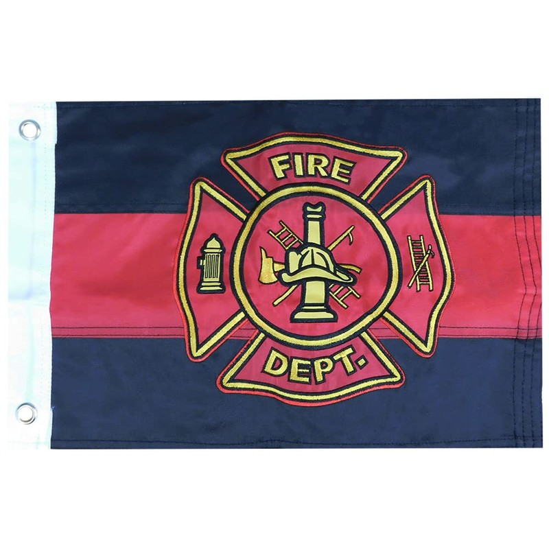 Fire Department Thin Red Line Black Maltese Cross Premium Quality Fade Resistant Heavy Duty 12x18 12"x18" Double Sided Nylon Embroidered Boat Car Flag Grommets (B4L)
