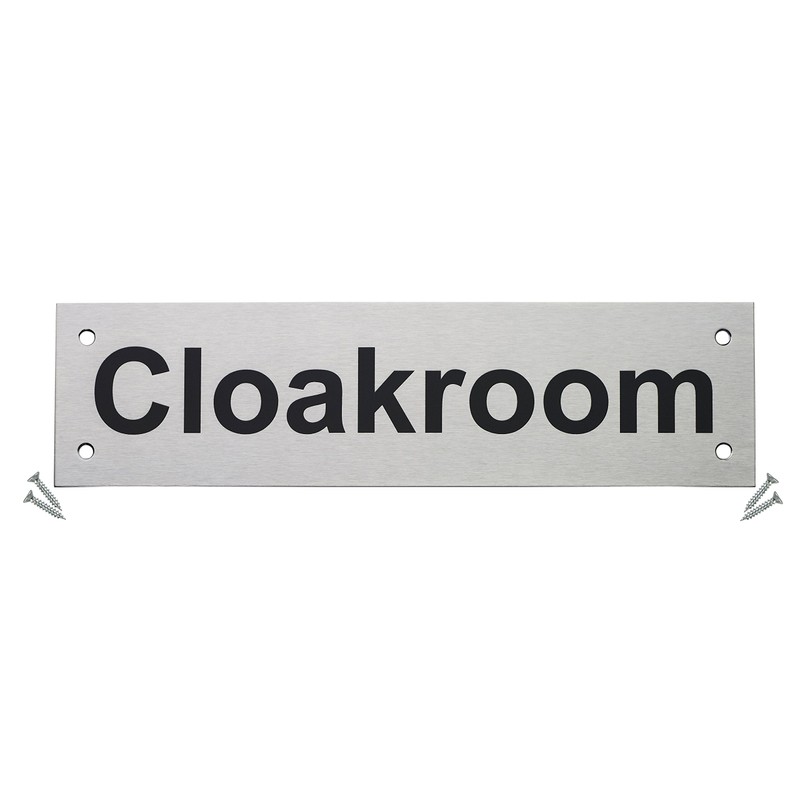Fire Door Guru® Cloakroom Door Sign - 225 x 60mm Rectangular - Stainless Steel Safety Sign - Fixings Included