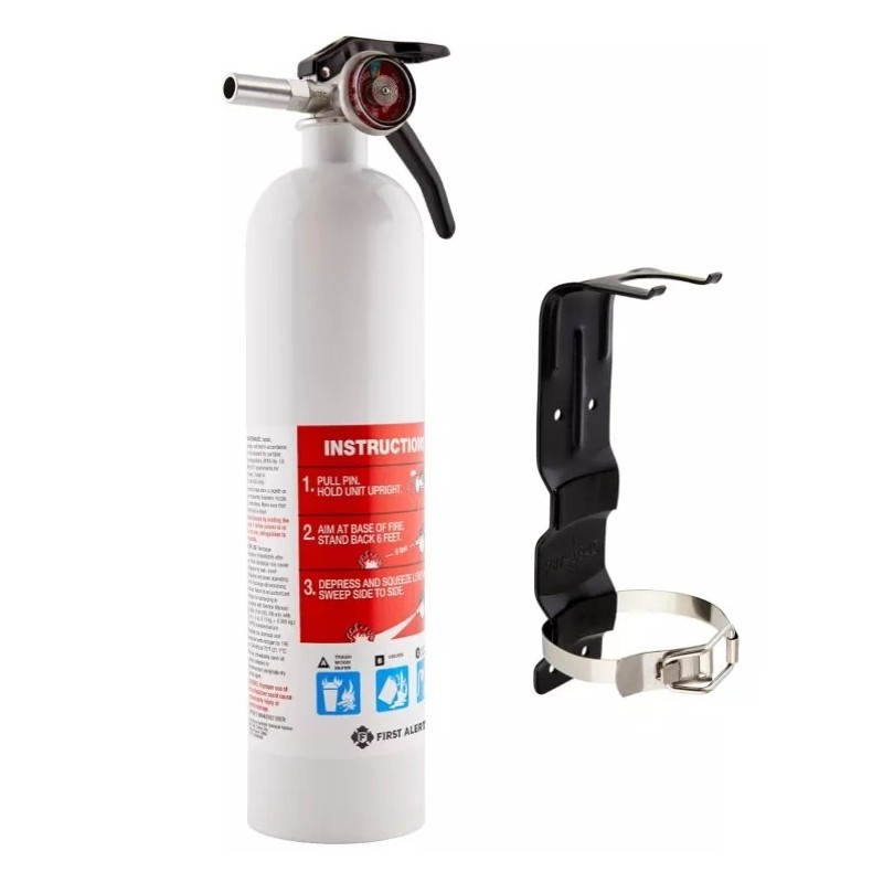 • Secure garage extinguisher mount, bracket and strap are included for secure placement of extinguisher