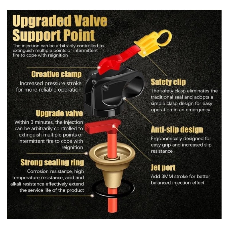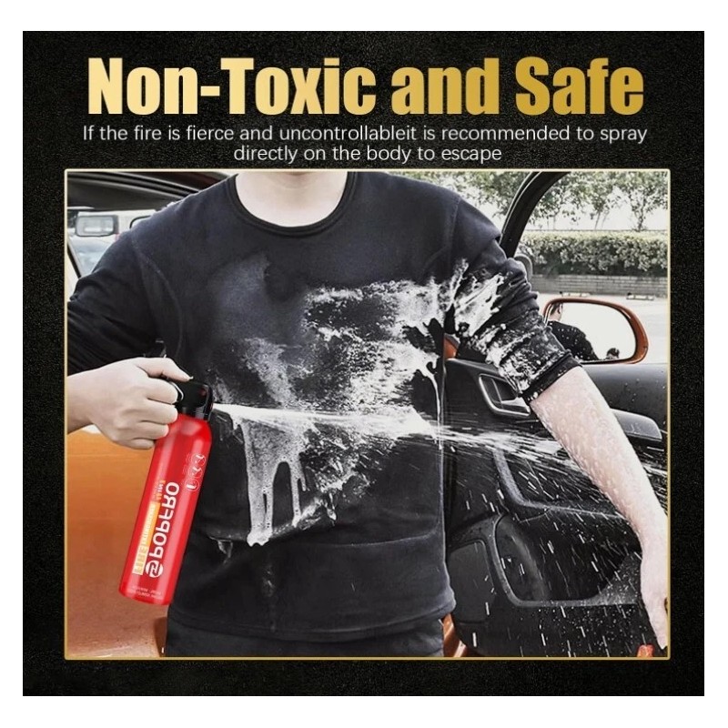 • ECO-FRIENDLY FIRE EXTINGUISHER:Based on a non-toxic and biodegradable formula, our car fire extinguisher is super safe and can help you solve fire problems without causing you irritation or other problems.