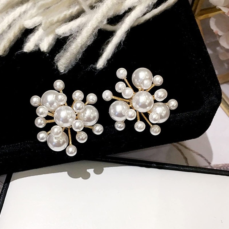 Fire Flower Pearl Earrings Cluster Pearl Drop Dangle Earrings Fashion Pearl Eardrop for Women Elegant Jewelry-pearl earrings