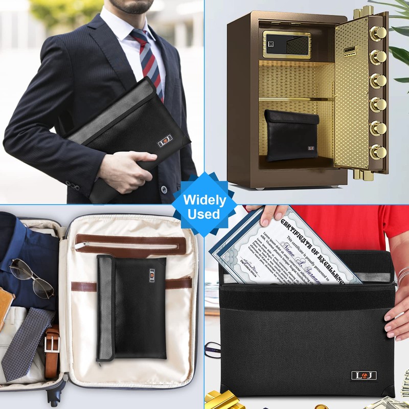 - 🔥TOP FIREPROOF DESIGN: Recommended by professional firefighters and tested in the most demanding environments,Our fireproof document bags mainly adopt a 8-layer function material structure of fire protection and heat insulated. The fireproof money bag for cash is sewn with flame-retardant thread and fireproof hemming, to prevent fire from damaging the fireproof bag from the edge, closure by flap, so that its zipper completely prevent fire,which make the fire safe bag 360° fire resistant