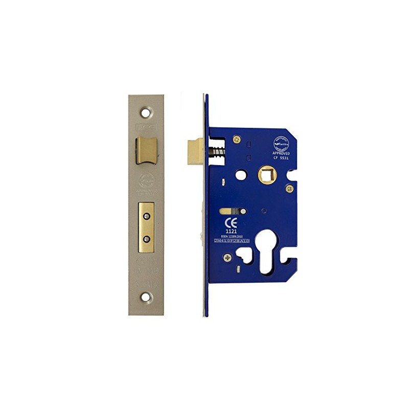 Fire Rated Euro Profile Sashlock Case 63 mm (44 mm Backset) Satin Nickel