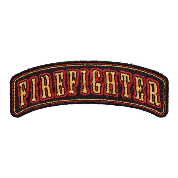 Firefighter top rocker patch, "FIREFIGHTER" embroidered in yellow and red on a black rocker.