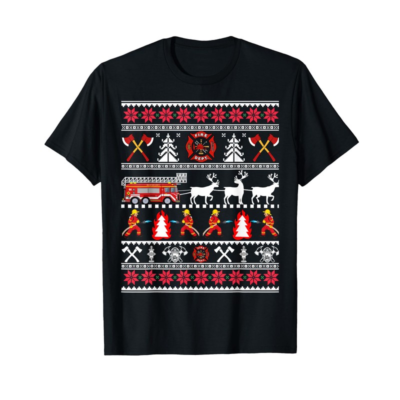 Firefighter Ugly Christmas Sweater, Fireman Fire Department T-Shirt