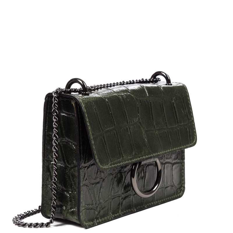 Firenze Artegiani. Fabrizia Women's Genuine Leather Crocodile Pattern Large Camoscio Shoulder Bag, 19 x 5 x 13 cm, Dark Green, Dark Green, Utility, dark green, Utility