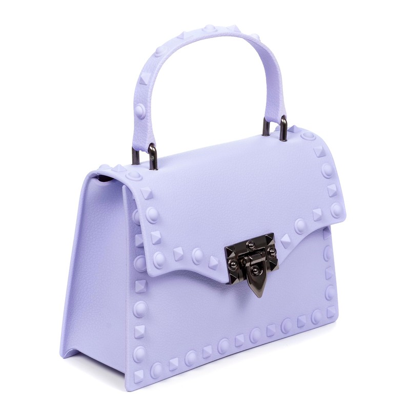 FIRENZE ARTEGIANI Libelula Mini PVC Tote Bag with Studs, Exclusive Closure, 20 x 7.5 x 15 cm, Colour: Light Purple, Light Purple, Utility