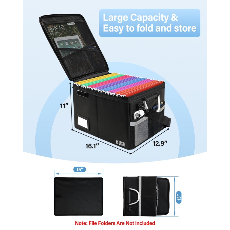 Fireproof Document Box, File Organizer for Hanging File Folders, Portable Fil...