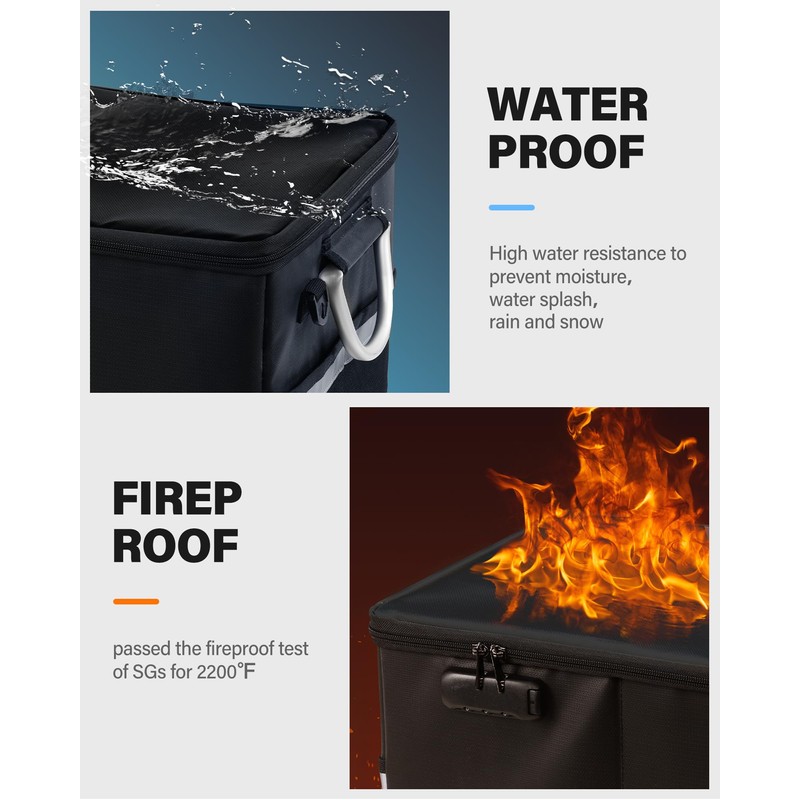 • Fire Safe Document Box: Our fireproof document box has passed the fireproof test of SGS, it can withstand in 2200℉ for a period of time, reserve time to save your important documents. the surface waterproof function, even accidentally spill water on it, or fire water, it is also very convenient to carry files outside on rainy days.