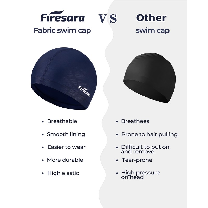 - [FINE WORKMANSHIP] We improved the workmanship of our swim caps. The edges of cloth is stitching with durable thick thread, uniformity thread with fine workmanship. you can be rested assured to enjoying your swimming with ease. If you are unsatisfied with this swim cap for any reason, please contact Firesara Service Team. And please trust us, we will try our best to solve the problems and give you the great buying experience.