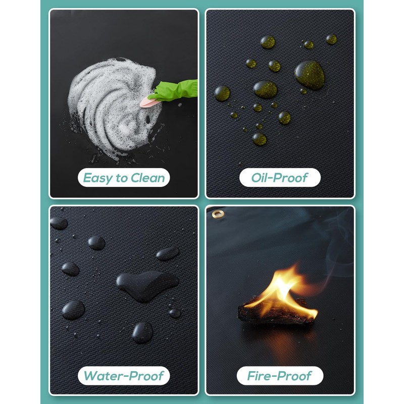 - Double-Sided Silicone Coating - We use more advanced fire-resistant materials for this grill mat. It is made of fiberglass and can provide heat resistance up to 2000 degrees Fahrenheit. The mat also has a double-sided high-temperature resistant silicone coating, making it fireproof, waterproof, and resistant to oil. Compared to traditional rugs, our heat resistant mats have finely stitched edges and will not stick, tear, curl or crack from heat.