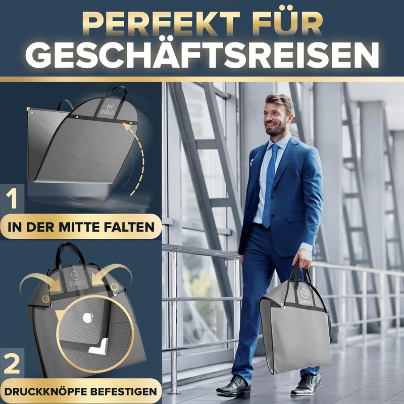 - We are quality winners – our high-quality, long garment bag travel bag with optimised material thickness (up to 50% thicker material) received the top mark in the garment bag test. The modern FiRiO suit bag is the best choice for travel and storing your expensive clothes!